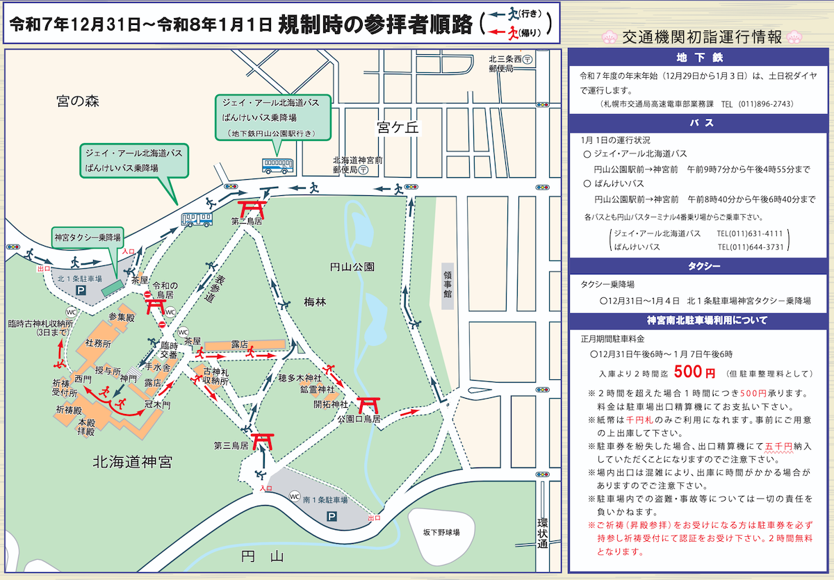 12月31日~1月4日 :北1条駐車場神宮タクシ-乗降場